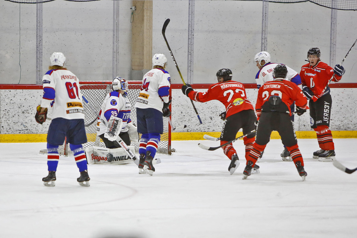 09:18 1-0 Valtteri Mäkiviinikka (Lauri Oksa, Valtteri Ylitalo) 19:20 2-0 Risto Lindfors (Niko Kuivaniemi, Jere Koskinen) 37:14 3-0 Jere Koskinen (Joni Mäkelä, Waltteri Selimgerei) 38:34 4-0 Miska Varjosaari (Valtteri Mäkiviinikka, Niko Kuivaniemi) VoM 41:40 4-1 Santeri Salminen (Mikke Lempiäinen) 49:48 5-1 Risto Lindfors (Aleksi Niemi, Waltteri Selimgerei) 55:09 5-2 Tuomas Pekkonen (Erik Naroma, Samuli Niinisaari) 56:54 5-3 Erik Naroma (Leevi Laine, Mikke Lempiäinen)