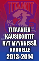 Titaanit Akatemian syyskuussa alkavan kiekkokauden 2013–2014 kausikortit ovat nyt myynnissä. Osta kausikortti itsellesi ja varmista näin ajoissa paikkasi punanuttujen viihdyttävissä kotiotteluissa Kotkan jäähallin lehtereiltä. Titaanit Akatemian kausikortin saa tulevalle kiekkokaudelle lunastettua itselleen 30 euron hintaan. Kausikortin omistaja voi Titaanien harjoitus- ja III-divisioonan kotiotteluissa etsiä itselleen vapaan paikan A-, B-, C- tai D-katsomosta. |