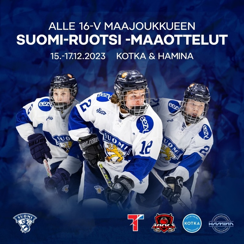 Suomen alle 16-vuotiaiden maajoukkue pelaa Kotkassa ja Haminassa kolme Ruotsi-ottelua 15.–17. joulukuuta välisenä aikana.