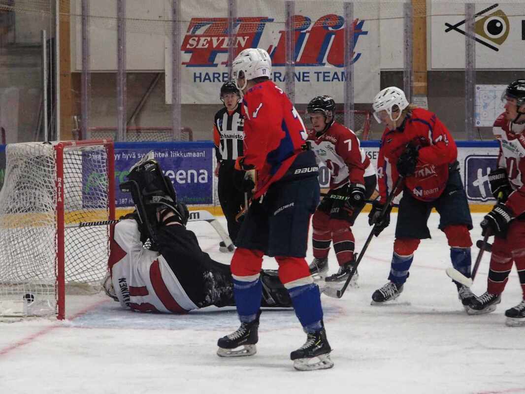 Vieraat ottivat varsin aikaisessa vaiheessa aikalisän sekä maalivahtinsa Veli-Matti Mäkisen pois maalinsa suulta ja hakivat rohkeasti helpottavaa tasoitusmaalia kuudella kenttäpelaajalla punanuttujen viittä vastaan.