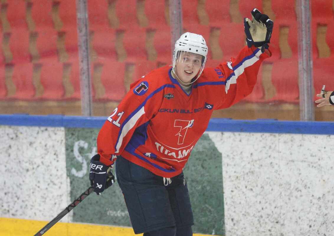 Perjantai-illan maaliahneimpana punanuttuna häärinyt ja lopulta kypärätempun pakin tontilta paukuttanut Valtteri Vuosjoki johti edestä Titaanien puskutraktorimaista PEPO HC:n ylijyräystä.