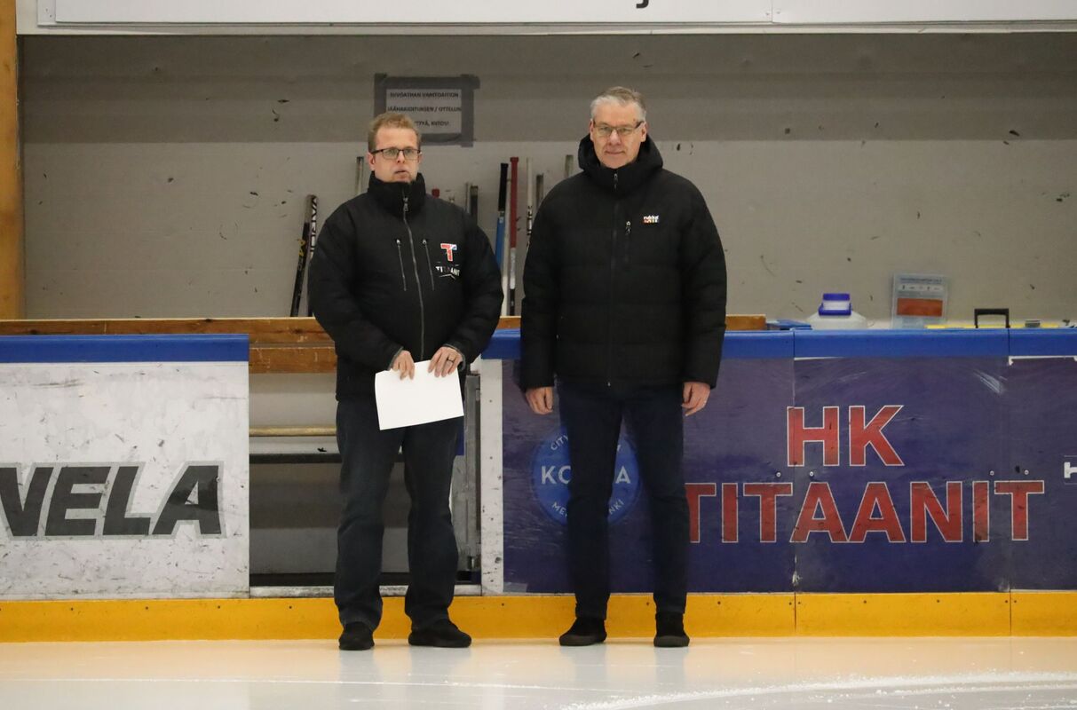 Aapo Lampisen kävi palkitsemassa Titaanien lauantaisen (23.11.) kotiottelun yhteydessä Suomen Jääkiekkoliiton Kymi-Saimaan alueen aluepäällikkö Kari Schemeikka.