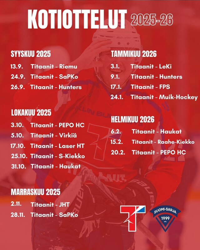 - Kausikortti oikeuttaa sisäänpääsyn kaikkiin harjoituskotiotteluihin sekä Suomi-sarjan runkosarjan kotiotteluihin kaudella 2025–2026.