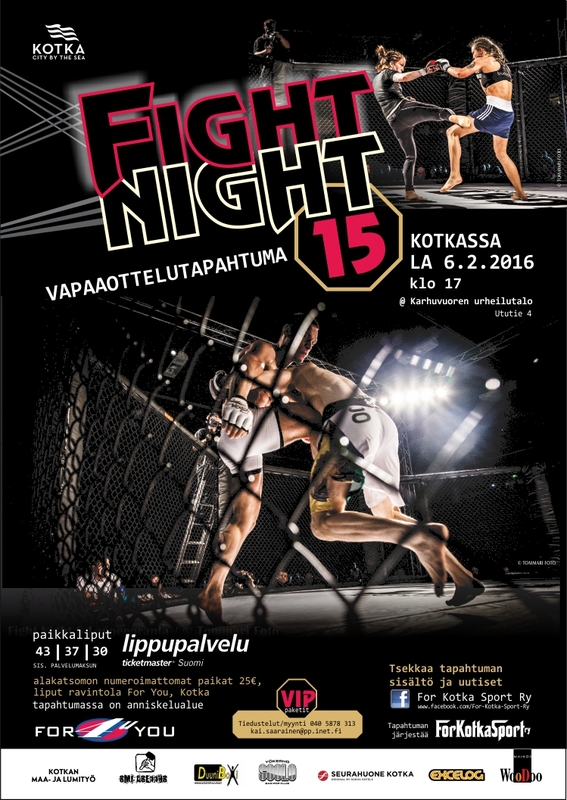 Karhuvuoren urheilutalolla isketään lauantaina 6. helmikuuta 2016 kello 17:00 alkaen Kotkan urheiluhistorian ensimmäinen vapaaottelutapahtuma – Fight Night 15!