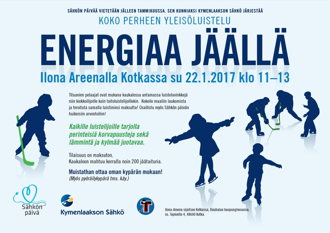 Valtakunnallista Sähkön päivää vietetään jälleen tammikuussa. Sen kunniaksi Titaanit on yhdessä Kymenlaakson Sähkön kanssa järjestämässä koko perheen yleisöluistelutapahtumaa Ilona Areenalla sunnuntaina 22.1.2017.
