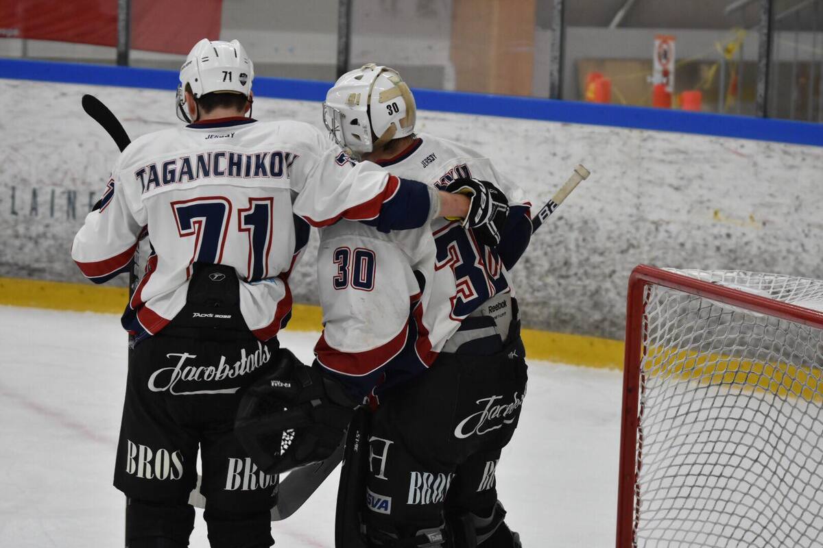 KSOY Areenalla sunnuntaina vietetyt ”isänpäivän etkot” päättyivät vierailija Muik Hockeyn voitonjuhliin. © Mikael Granqvist